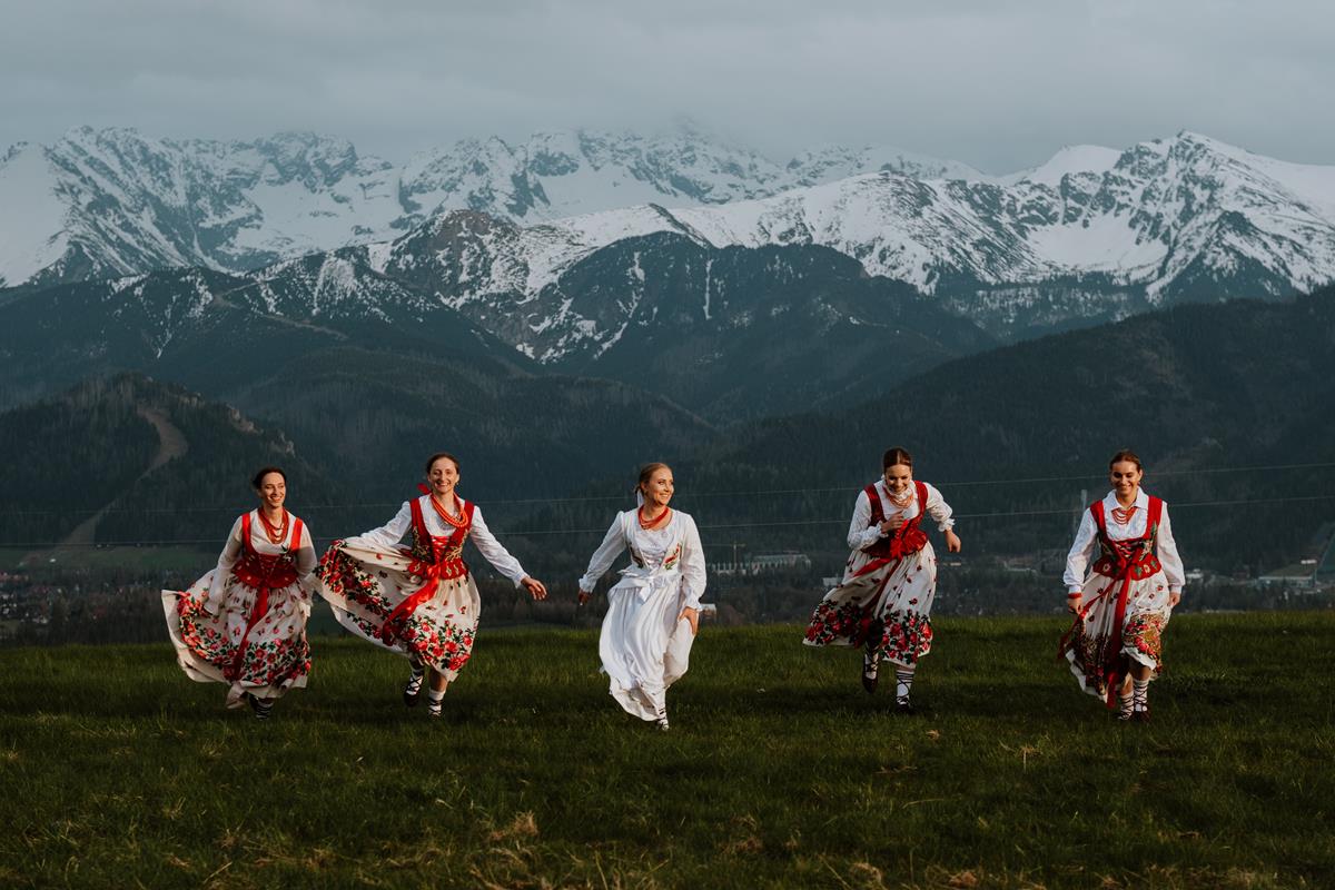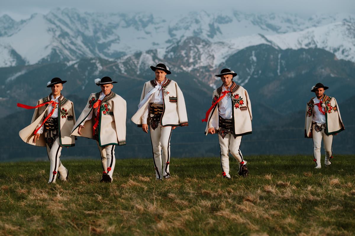 Jak zwykle po pierwszym tańcu i uroczystym pokrojeniu ślubnego totru udaliśmy się sesję plenerową z góralska drużyną. Co więcej musimy Wam przyznać, że jest to jeden z naszych ulubionych punktów podczas góraskiego wesela. Tym bardziej, że dla nas to chwila na zrobienie ciekawych i wesołych zdjęć. Ponadto drużbowie i druhny mogą sobie wówczas pozwolić na odrobinę szaleństwa, co rewelacyjnie nam się fotografuje.