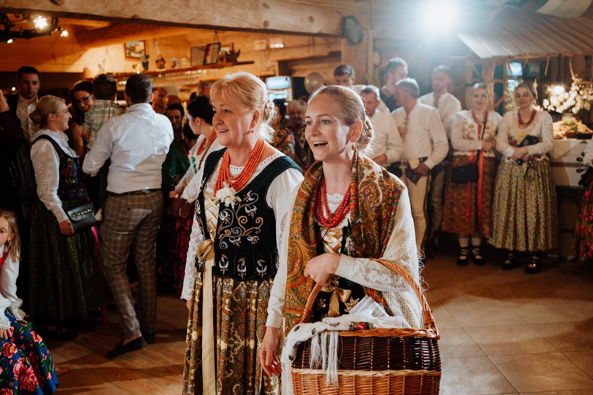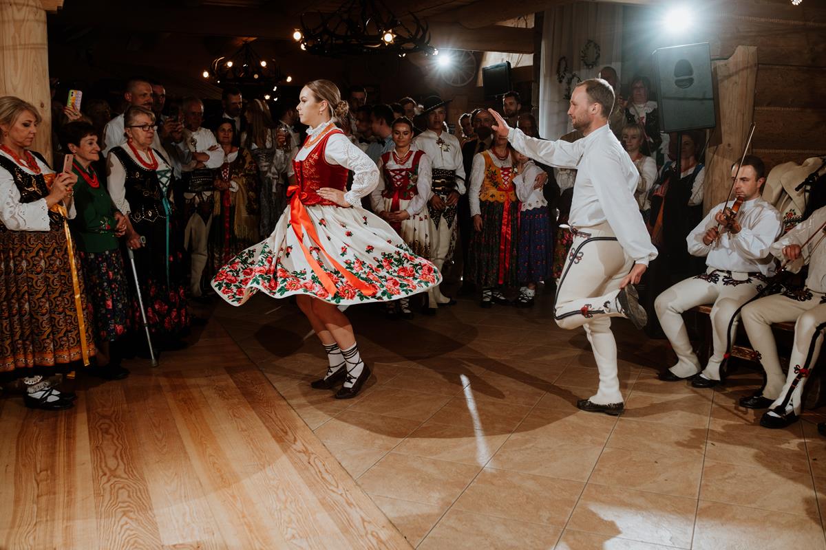 Następnie po ceremonii, goście zostali zaproszeni do Karczmy Harenda, gdzie czekało na nich przyjęcie weselne pełne lokalnych smaków. Oczywiście jak to na Harendzie. stoły aż uginały się od tradycyjnych potraw. Bez wątpienia Karczma, z dbałością o każdy szczegół, stworzyła atmosferę, w której wspólne biesiadowanie przy dźwiękach góralskiej muzyki stało się niezapomnianym doświadczeniem.